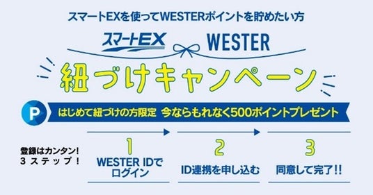 ・特典内容:キャンペーン期間中に、WESTERとの紐づけ登録「EXサービス ポイント付与登録」を完了された方に対して、WESTERポイントを500ポイント還元。(エントリー不要)