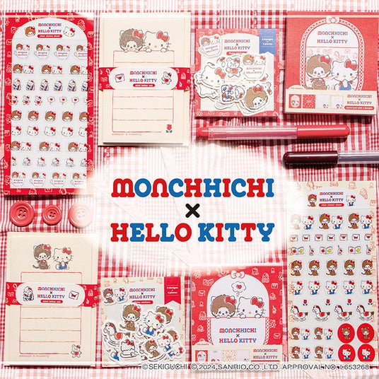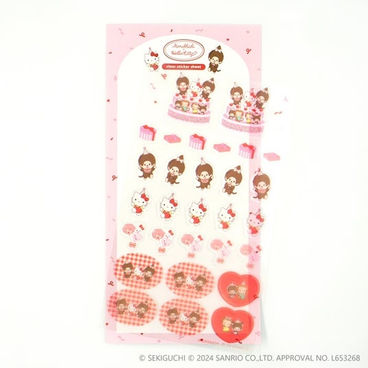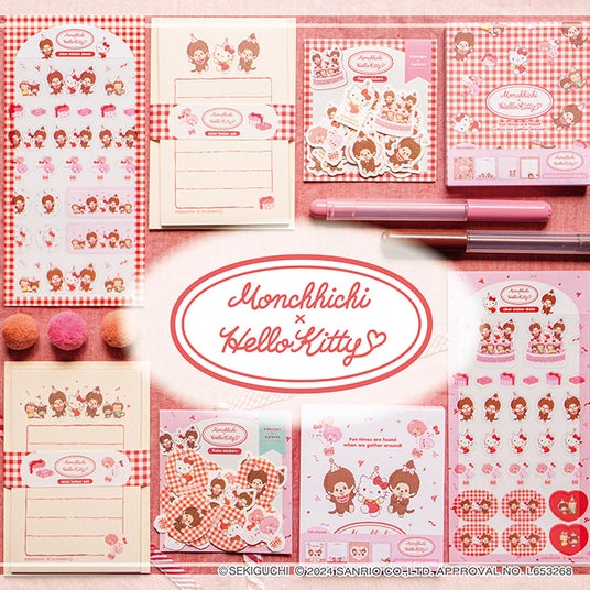 おそろいでつけた赤いリボンやパーティーをしたりと仲良しなモンチッチとハローキティがとってもキュートです。