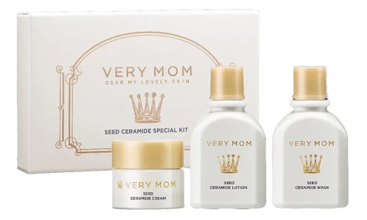 画像左より:シードセラミドクリーム5ml、シードセラミドローション15ml、シードセラミドウォッシュ15ml