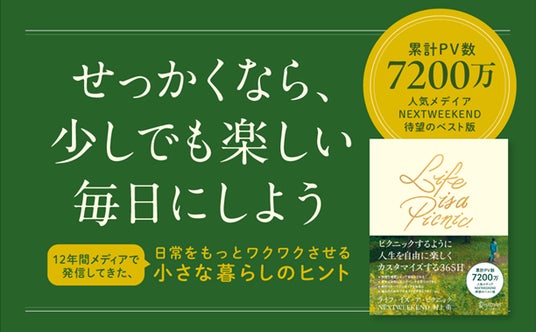 本書は、累計7200万PVを誇る人気メディアNEXTWEEKENDのベスト版ともいえる一冊。毎日を自由にカスタマイズする“ピクニック思考”を提案し、「15分だけ、自分のための贅沢なケアをしてみる」「旬のフルーツでシロップを仕込む」などといった具体的なハウツーから、「誰かのために覚えておきたい言葉」「自分の心を解く思考術」など、人生を通して活用できる思考術まで、365のアイデアをめいっぱいに詰め込みました。予約開始時より反響をいただき、発売前増刷も決定しています。