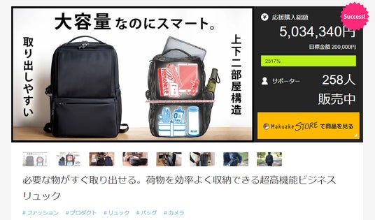 2021年クラウドファンディング時のEnduraceedビジネスリュックページ