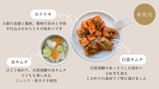 【紹介商品:ペチュキムチ、梅ぼしキムチ、セロリキムチ】