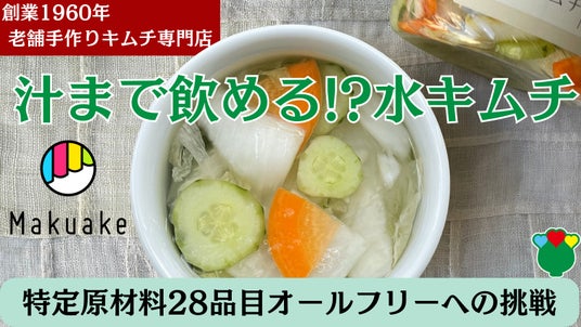 1960年創業から代々伝わる伝統製法で作り続けているキムチ専門店 株式会社第一物産【本社:東京都台東区 代表:姜恵蘭(かん へらん)】は、特定原材料オールフリーの水キムチブランド「ハナキムチ」を開発し、2024年10月20日(日)より、応援購入サイト「Makuake」にて先行発売を開始します。