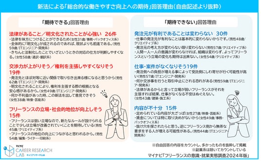 「フリーランス新法」施行、37.8%が「契約トラブル防止に期待できる」。「期待できない」の約2倍。「企業と対等に取引できるようになる」「法律を味方にできる」の声も