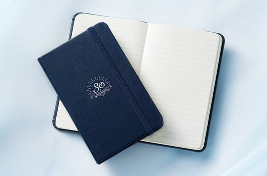銀座ダイヤモンドシライシ30周年のロゴ付きオリジナルノートをご用意しております。小さいサイズなので軽く、持ち運びがしやすいアイテムです。結婚式の準備や結婚生活に向けてぜひご活用ください。