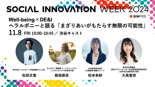 一般社団法人渋谷未来デザイン(代表理事:小泉秀樹、以下渋谷未来デザイン)は、ソーシャル&カルチャーデザインの祭典「SOCIAL INNOVATION WEEK 2024(以下SIW)」を10月18日(金)~11月10日(日)まで開催中です。