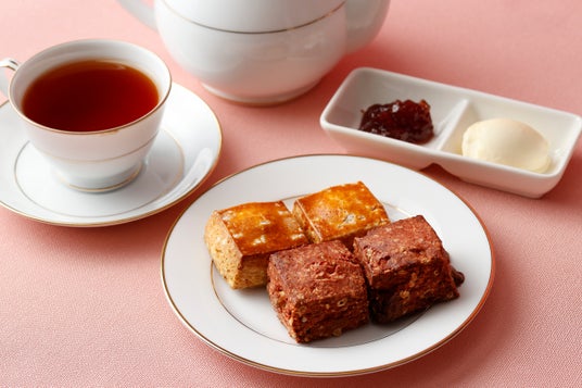 アフタヌーンティーで提供をしているホテルメイドのスコーンをご自宅でもお楽しみいただけます。季節によって変わる限定のフレーバーとプレーンの2種類を各2個、計4個入りでご用意、香ばしいサクサク感と中のしっとりとした食感を、朝食やティータイムでお楽しみください。