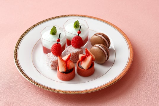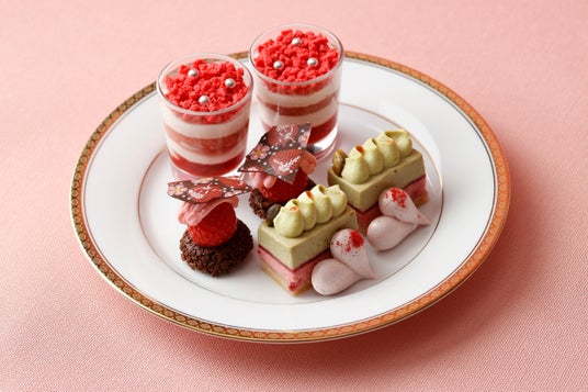 いちごの果実感とチョコクランチのザクザク感が口いっぱいに広がる「まるごと苺のチョコクランチ」やいちごの甘酸っぱさに爽やかなミントの相性が抜群な「苺とミントのふわふわゼリー」、スポンジを使用したオーストラリア発祥のデザート「ラズベリーのラミントン」の他、「苺のティラミス」、「苺とピスタチオのムース」など、パティシエこだわりの各種スイーツをバリエーション豊かにご用意しました。セイボリーには「苺バタークリームとミントクリームチーズのサンド」、「牛ほほ肉とカマンベールチーズのキッシュ ラズベリー風味」など、いちごの風味を生かした個性豊かなラインナップです。人気のスコーンは「苺とホワイトチョコのスコーン」と「プレーンスコーン」の2種類をお楽しみいただけます。ジューシーで甘酸っぱい“いちご”の魅力に心躍る、ときめく想いをイメージして贈る期間限定のアフタヌーンティーです。いちごの甘い香りに包まれる優雅なティータイムを、ごゆっくりお過ごしください。