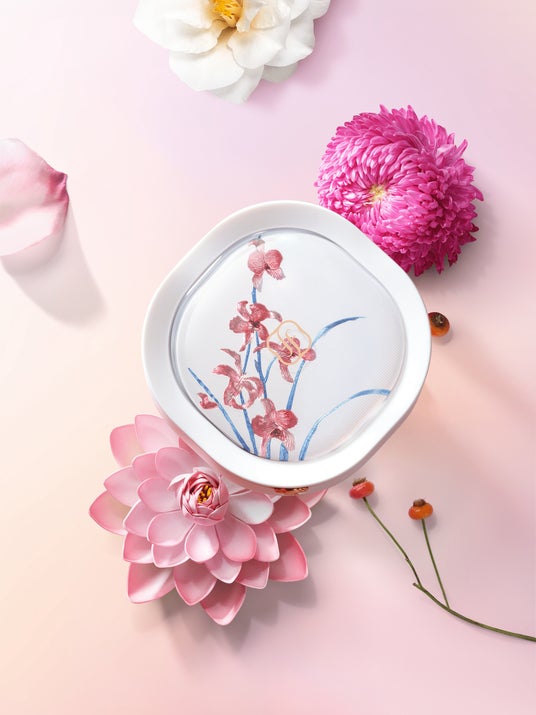 今回新商品となる刺繍限定コレクションでは、パッケージに蘇繍で編みられた蘭の花を再現しました。蘭はその高貴で洗練された姿から、特別な存在や価値あるものを象徴する花として知られています。蘭はその独特な美しさから、世界中で愛される花であり、その花言葉も高貴でポジティブな意味合いを持っています。