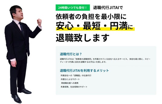 「退職代行JITAI株式会社(本社:東京都新宿区、代表取締役:高橋健司)は、働く人々の退職における悩みや負担を軽減する「退職代行サービス」を2024年10月21日より提供開始いたしました。本サービスは、人気インフルエンサーである「ゆゆうた」さんの監修のもと、よりユーザーに寄り添った形での提供を目指しています。即日対応を可能にし、ストレスなく退職できる環境を整えています。