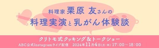 乳がんなどの発症リスクが高まる体質「遺伝性乳がん卵巣がん(HBOC)」のことをより多くの人に知ってもらい、早期発見につながることを願い、ミリアド・ジェネティクスは、さまざまな啓発活動に取り組んでいます。その一環として、ご自身もHBOCである料理家の栗原 友さんを招いて、世界最大級の料理教室ABCクッキングスタジオで「クリトモ式クッキング&トークショー」を開催し、その模様をABCクッキングスタジオの公式Instagramでライブ配信します。
