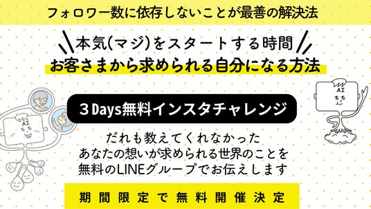 本気(マジ)をスタートする時間。お客様から求められる自分になる「3Days無料インスタチャレンジ」