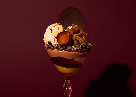 15種の手作りパーツを重ねて構成される『金蜜芋(R)︎のショコラパフェ』