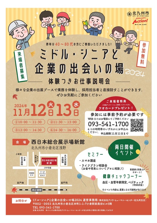 ミドル・シニアと企業の出会いの場2024- 北九州市主催 体験つきお仕事説明会を11月12日、13日に開催します!事前予約は11月11日まで!
