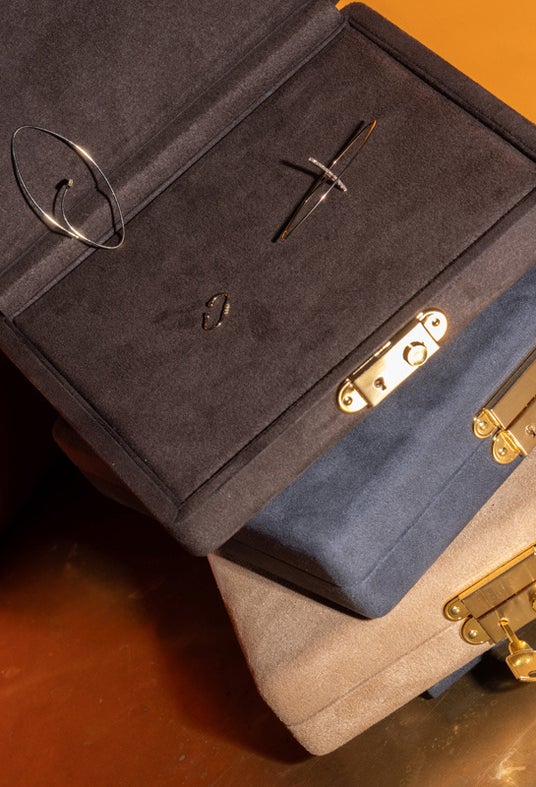 不動の人気を博しているフローティングピアスと新作イヤーカフをセットに。キャンドルと共に、オリジナルトラベルジュエリーケースが含まれています。