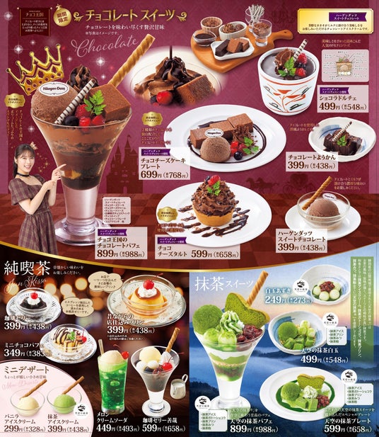 「チョコ王国のチョコレートパフェ」「チョコチーズタルト」など期間限定スイーツ♪