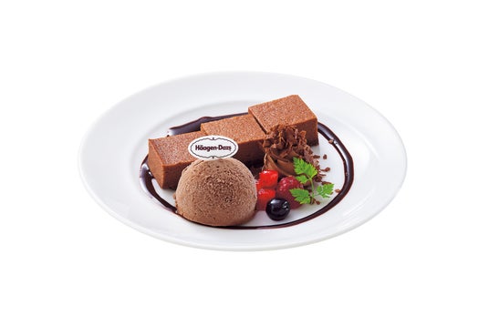 さとオリジナルのチョコチーズクリームを使用した濃厚タルトで、中にハーゲンダッツ スイートチョコレートのアイスクリームが隠れています。