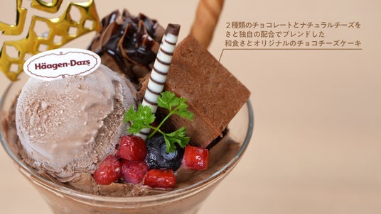 今回注目のスイーツ『チョコ王国のチョコレートパフェ 899円(税込988円)』は、渋谷さんから頂いた「チョコデザートをちょこっとずついっぱいのったチョコ尽くしのパフェ」というリクエストから、チョコチーズケーキやチョコホイップ、チョコチーズクリーム、そしてハーゲンダッツ スイートチョコレートなど、チョコレートアイテムをふんだんに使用したパフェです。チョコチーズケーキは、チョコレートテイストのちょっと珍しいチーズケーキで、2種類のチョコレートとナチュラルチーズを和食さと独自の配合でブレンドした、しっとり・なめらか食感の「さとオリジナル」のチョコチーズケーキです。クリームチーズとチョコレートをブレンドした「チョコチーズクリーム」は、今回のコラボメニューに合わせて開発した和食さとのオリジナルクリームです。さらにハーゲンダッツ スイートチョコレートや、チョココーンフレークなども使用し、チョコレート好きにはたまらないパフェが完成しました♪パフェの上に添えたゴールドのチョコ王国の王冠がトレードマークで、見た目にも可愛く渋谷さんも太鼓判のチョコレートパフェを是非お楽しみください。