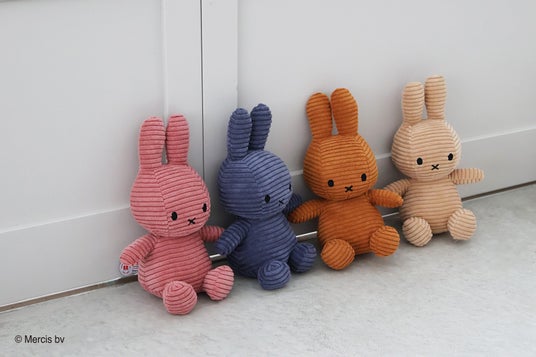 選ぶのに迷ってしまうほどカラーバリエーションが豊富な「Corduroy」シリーズや、もふもふな触りごこちに癒される「Recycle Teddy」シリーズ、繊細に編み込まれた「Organic Cotton」シリーズなど、素材や品質にもこだわったmiffyとその仲間たち。バリエーションゆたかな「miffy collection」は、今も世界中で愛され続け、これからもすばらしい未来をもつすべての子どもたちの「しあわせ」のために、特別な想いをこめて…
