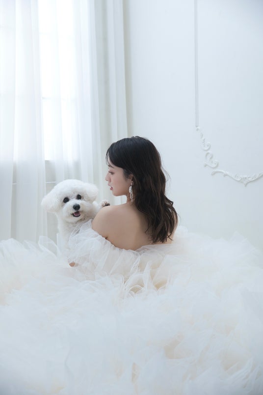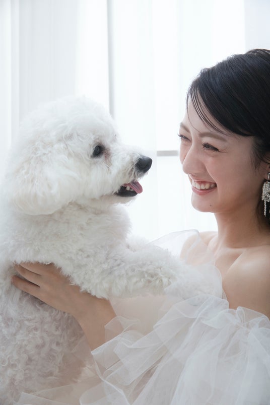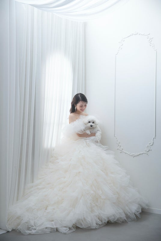 日常生活で愛犬とのお写真はたくさんある中、広々としたシンプルながらも甘い空間で、特別感ある愛犬との撮影を。