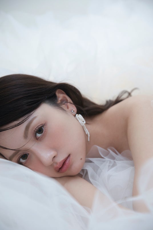 ドレスは大注目のブランド『SACHIKO TSUTSUI』新作のティアードチュールの白ドレス。