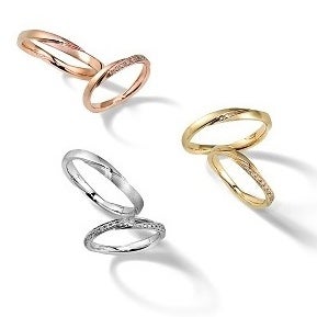 「スター ジュエリー」左上から時計回りに)マリッジリング(K18PG)137,500円、マリッジリング(K18PG・ダイヤモンド0.04ct)152,900円、マリッジリング(K18YG)137,500円、マリッジリング(K18YG・ダイヤモンド0.04ct)152,900円、マリッジリング(Pt950・ダイヤモンド0.13ct)231,000円、マリッジリング(Pt950)137,500円[いずれも阪急うめだ本店限定]※オーダー品につき、お渡しに約1ヵ月いただきます。◎1階 ブライダルジュエリーギャラリー