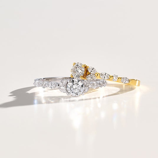 「イーエム」上から)エンゲージメントリング(Pt950・K18YG・ダイヤモンド約0.15ct)322,300円から、マリッジリング(Pt950・K18YG)214,500円から[いずれも阪急うめだ本店限定]※オーダー品につき、お渡しに約2ヵ月いただきます。◎1階 アクセサリー売場