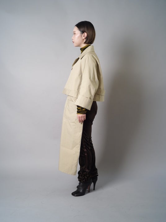Remakeの素材となったのは、以前は商品として販売していたけれど、過剰に作り過ぎて行き場を失った新古品のバルマカンコートです。
