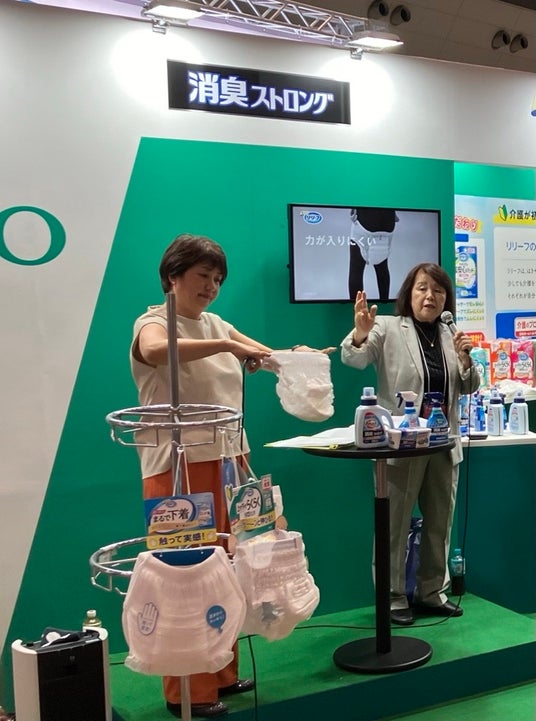 ヘルパー協会会長の境野みね子氏に各日3回登壇いただきました。リリーフ、消臭ストロングの各特長や、