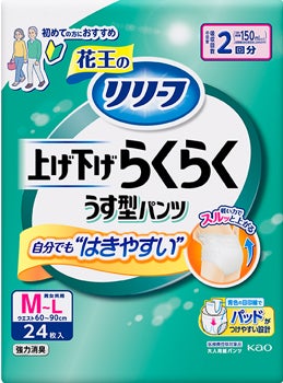 新商品であるリリーフ「上げ下げらくらくパンツ」「超安心パッド」は、介護初心者でも安心して