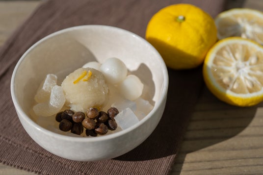 柚子白玉あんみつの寒天と餡子に使用している柚子は「黄柚子」なので、甘さと酸味の両方をお楽しみいただけます。