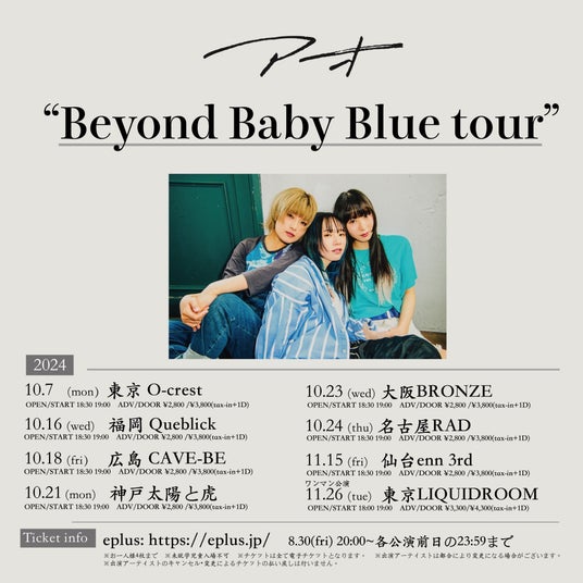 また、アオは全国8箇所を廻るツアー『Beyond Baby Blue tour』を開催中。