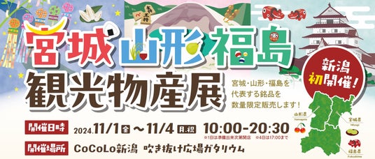 仙台ターミナルビル株式会社(仙台市、代表取締役社長:松崎哲士郎)は、JR東日本新潟シティクリエイト株式会社(新潟県新潟市、代表取締役社長:小竹宏行)と連携して、JR新潟駅直結のショッピングセンター「CoCoLo新潟 吹き抜け広場ガタリウム」にて南東北の魅力を発信、東北と新潟の相互送客を促進するために「宮城・山形・福島観光物産展」を開催いたします。仙台銘菓「萩の月」や「ままどおる」、「やみつきしみかりせん」など南東北の逸品約150アイテムを取り揃え、みなさまのご来店をお待ちしております。