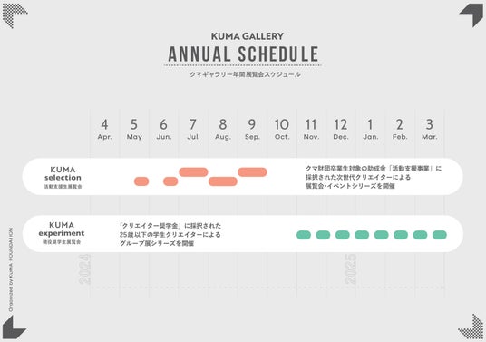 活動支援生による「KUMA selection」とクリエイター奨学生による「KUMA experiment」の2本を軸に、年間を通して若手クリエイターの作品を発信!