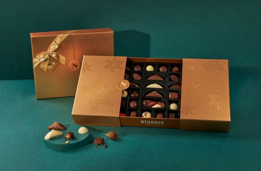ノイハウスの定番チョコレートだけでなく、チョコレートバーやホットチョコレート、日本未上陸のデュエッツも楽しめる特別なアソート。大切な人たちとシェアするクリスマスまでの温かで楽しいひとときを。