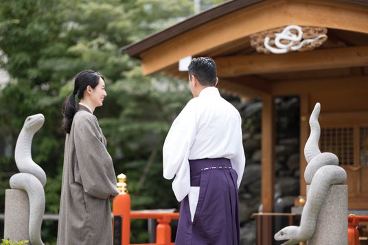 厄を払い運を呼び込む準備ができたら、神社での参拝と祈祷で滞在を締めくくります。出発前に天然温泉で身体を温め、身を清めます。訪れるのは、白蛇弁財天社を祀る「蛇窪神社」です。一度住処を奪われた白蛇が地主の夢枕に現れ、もとの住処に帰して欲しいと懇願したことで、現在の場所に祀られたと言われています。(*6)開運参拝コースといわれる「白蛇の戻り道」を星のや東京のスタッフが案内し、参拝前にご利益にあやかります。本プラン限定の、神職が案内する境内ツアーも楽しみのひとつです。蛇窪神社の由緒や正しい参拝方法を知る、通常の参拝では体験できない特別な時間です。巳年である2025年に、蛇にまつわる神様に感謝し飛躍を願うことで、運気を高めることを目指します。