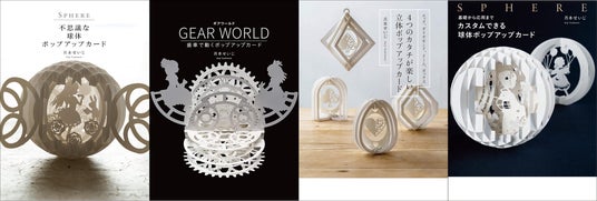 これまで紙だけで作り出せる作品の驚きや美しさを探究してきました。球体ポップアップカードはその中で生まれた最高傑作だと思っています。一瞬で平面から球体に変形する姿はまるで魔法のよう。球体の中に広がる世界はさまざまな想像力を掻き立てるでしょう。そして手に取る球体はなんだか愛らしささえあります。球体ポップアップカードは年齢性別を問わず多くの人を笑顔にできるそんな作品かと思います。