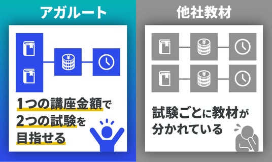 他社では基本的に1つの試験につき1つのカリキュラムを受講することになるのでお金と時間がかかりますが、アガルートでは2つの試験の試験範囲が同じであることに着目し、日本語教員能力検定試験の勉強をベースに日本語教員試験の合格を可能にする講座設計になっています。10月に日本語教育能力検定試験で実力を試し、11月に日本語教員試験に臨むことがおすすめです。