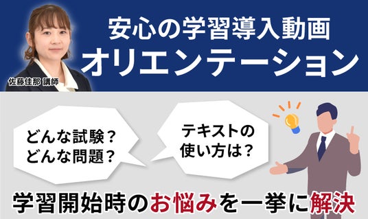 学習導入オリエンテーションどういう性質の試験?どんな問題が出る?テキストはどうやって使ったらいい? 学習開始時のお悩みを一挙に解決する安心の動画「学習導入オリエンテーション」。 これでスタートダッシュを切ることができます。