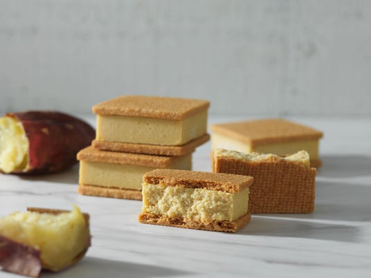 クセの少ないオーストラリア産クリームチーズが安納芋の甘さを引き立てます。ほっこりとした味わいに仕上げたベイクドチーズケーキをしっとりとしたサブレでサンドしました。