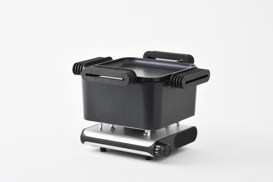 2021年にクラウドファンディングを実施した第一弾の愛用者からは、手軽さや性能を評価される声が集まる中で、「プレートが脱着できたら……」、「一人鍋もしたい」という要望も届いていました。そのご要望を受け、今回の第二弾ではプレートを脱着式に改良。さらに種類を焼肉などのグリルに適した平型プレートと、一人鍋ができる深型プレートの2パターン用意しました。