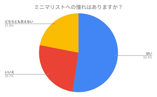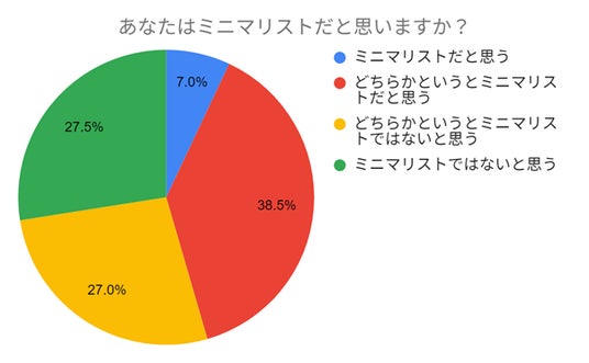 一方「ミニマリストではないと思う」および「どちらかと言うとミニマリストではない」と答えた人は109名(54.5%)で、”ミニマリスト派”をわずかに上回る結果となっています。