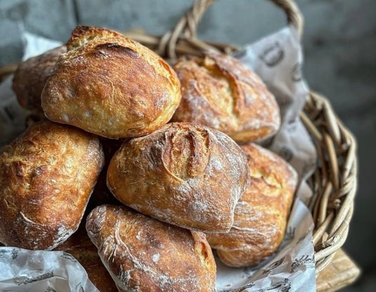 リュスティックとは、ハードで香ばしい外側ともっちりとした食感が特徴の、フランスの伝統的な発酵パン。一般的なリュスティックも加水率*が80%ほどと高く成形が難しいですが、当店ではさらなる新食感を求め、水分量150%と可能な限り高くして焼き上げ、パン業界に激震をもたらすほどのしっとり感を実現させた進化系リュスティックを開発しました。