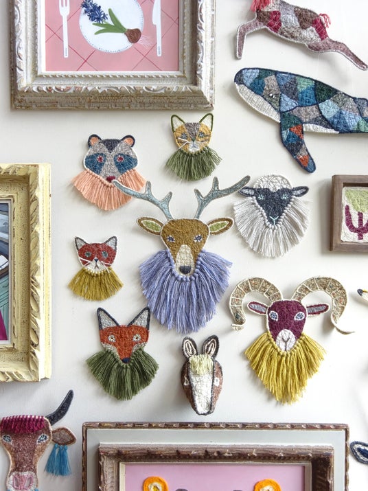 Kari Ishikawaは、テキスタイル分野を軸に幅広く活動を続け、2018年から毛糸をミシンで縫い合わせて作り出すファイバーアートを発表しています。今回は、シカや猫、くじらなどユニークで愛らしい表情が特徴的な動物をかたどった「アニマルヘッドシリーズ」を中心に、ファイバーアートの額装作品も展示します。