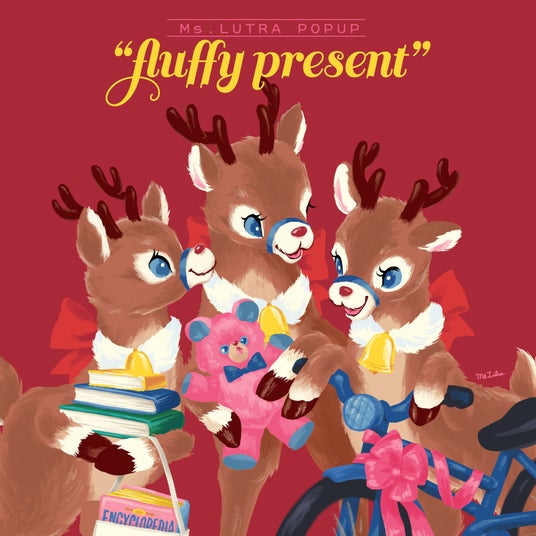 可愛らしい動物を、ビンテージアメリカンな雰囲気で描くイラストレーターMs.LUTRA。今回は、クリスマスプレゼントを運ぶトナカイをモチーフにしたメッセージカードやハンカチなどの雑貨、ガラスにハンドペイントを施したアート作品などを販売します。