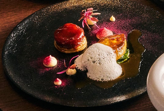 Foie Gras and Tarte Tatin with Cider Sauce and Vanilla Foam