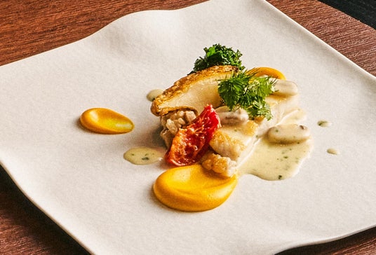 Poele of Flounder and Deep-Fried Abalone with Porcini Risotto