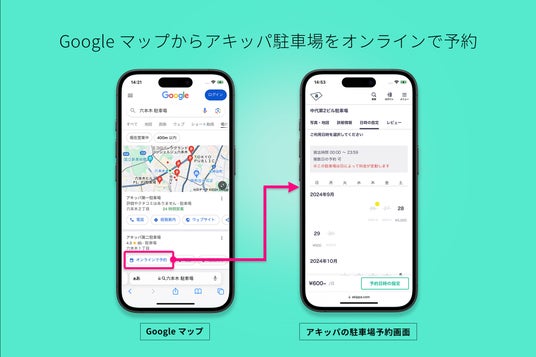 駐車場予約アプリ「アキッパ(akippa)」(以下、アキッパ)を運営するakippa株式会社(代表取締役社長 CEO:金谷元気)は、Reserve with Google への連携を開始したことをお知らせします。この連携によりGoogle マップでアキッパ駐車場の予約ができるようになります。