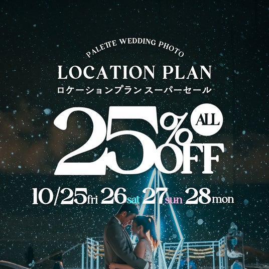 10/25(金),26(土),27(日),28(月)の4日間限定。全てのロケーションプランが25%OFFに!これからの季節、特に冬ロケ・秋ロケをご検討の方は絶好のチャンスです。
