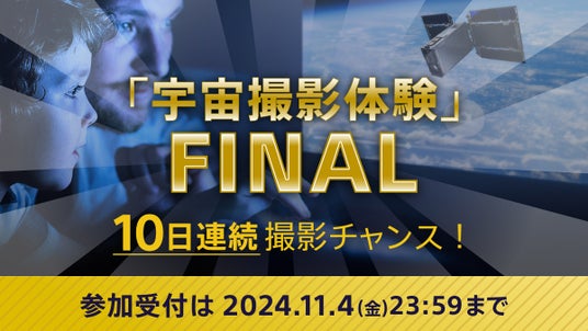 ソニーグループ株式会社(以下、ソニー)の「STAR SPHERE(スタースフィア)」プロジェクトは、2024年10月28日(月)から11月6日(水)まで、現在運用している人工衛星『EYE』による「宇宙撮影体験」ファイナルと題し、撮影枠を10日連続で一般公開します。これに先立ち、参加登録の受付を、本日10月24日(木)より開始しました。事前に登録をしていただくと、期間中の毎日先着順で宇宙撮影をリクエストできるチャンスがあります。世界で一つだけの宇宙規模の記念写真を撮影してみませんか?